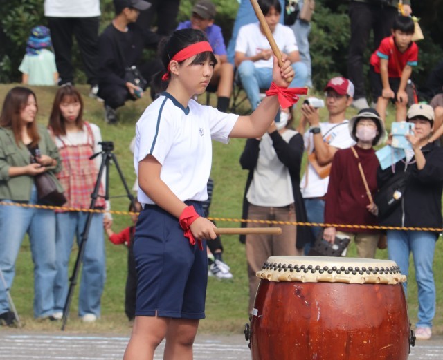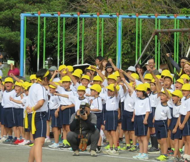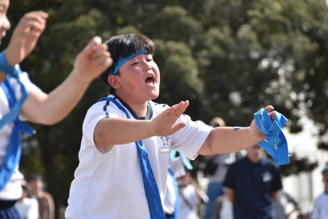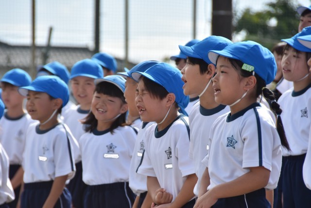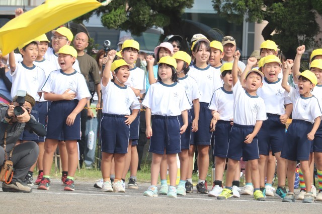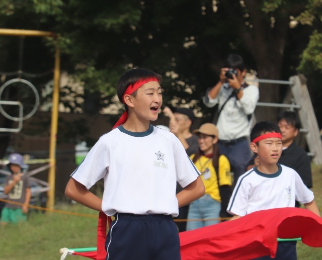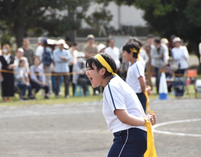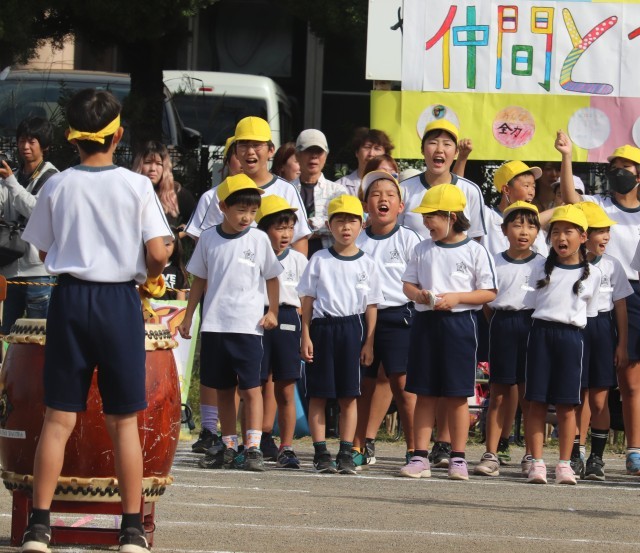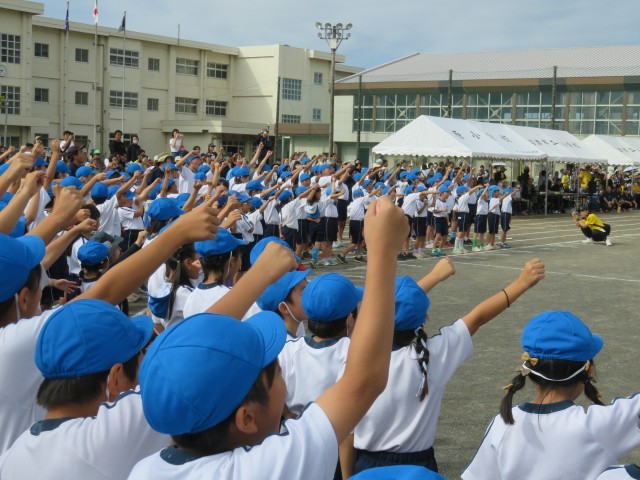 全校での応援合戦「応援合戦~声で勝利を手に入れよう~」の様子です。