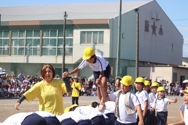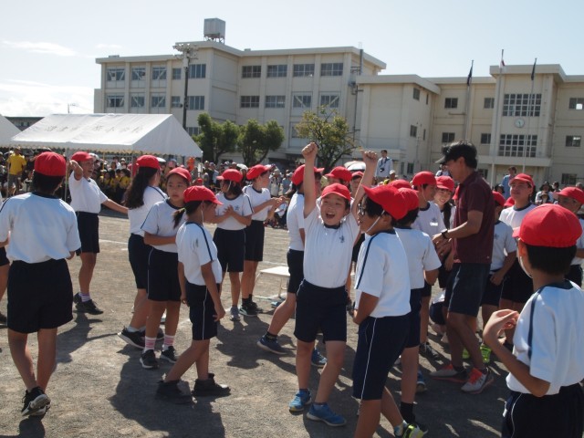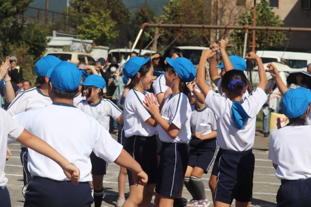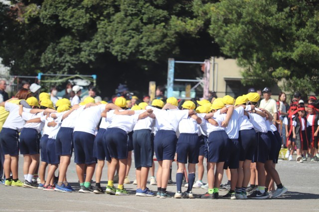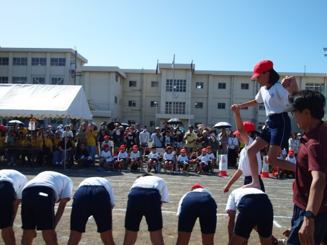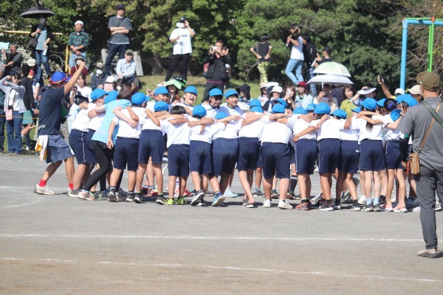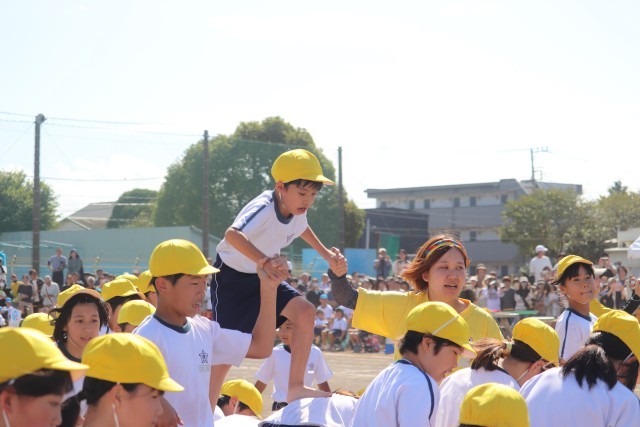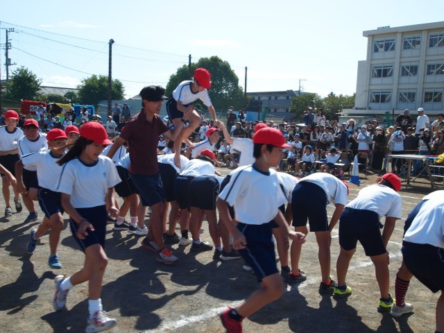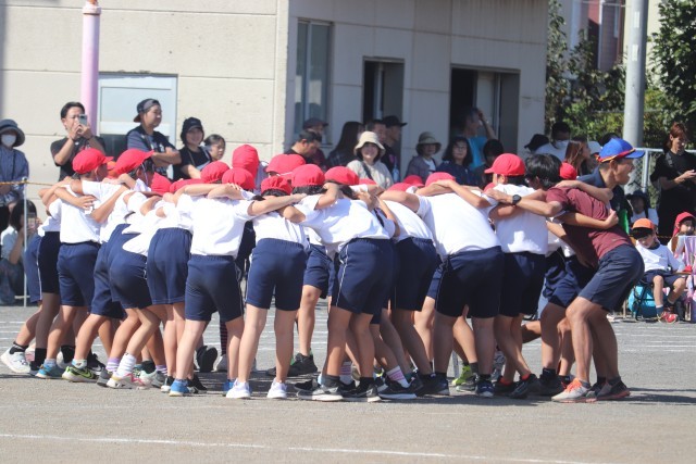 5年生の団競「背渡りで「原」を抱える5年かな!」の様子です。1位は青組、2位赤組、3位黄組でした。