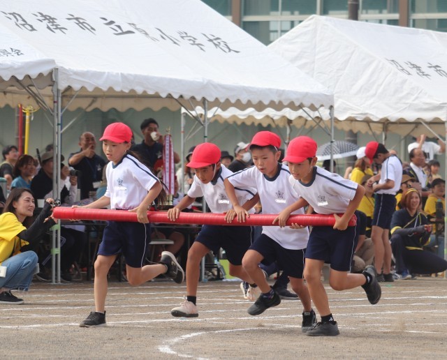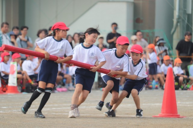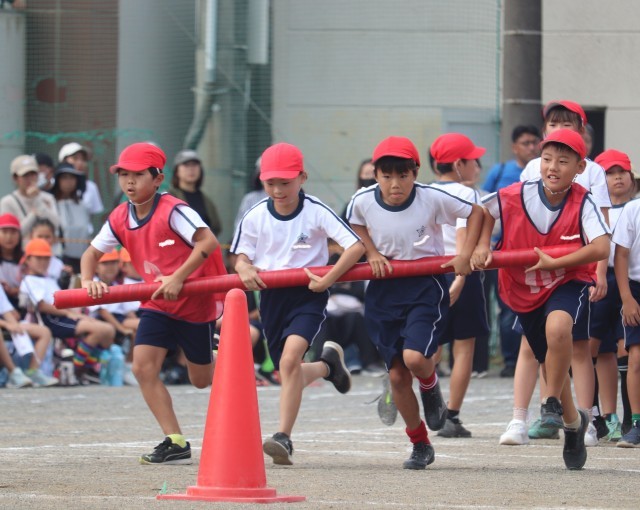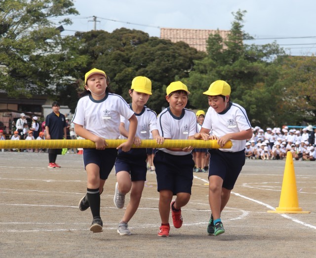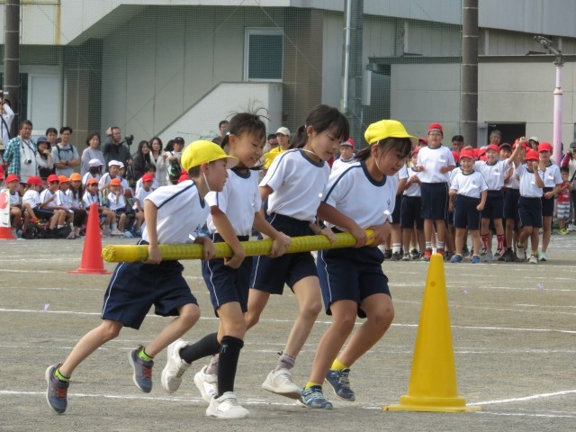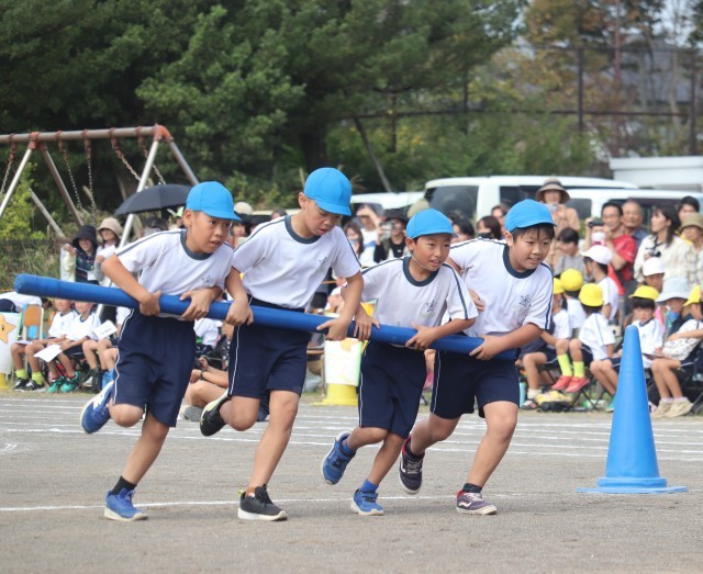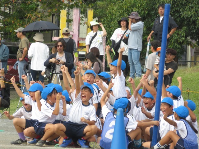 4年生の団競「巻き起こせ 嵐!!」の様子です。1位青組、2位赤組、3位黄組でした。