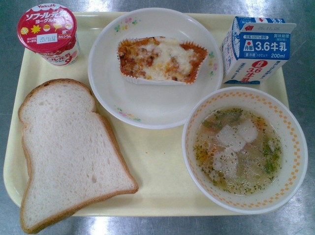 食パン 牛乳 ラザニア かぶのスープ ヨーグルト