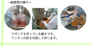 今日は、イタリア料理のラザニアです。給食では、ラザニアのシート状のパスタを使うことが