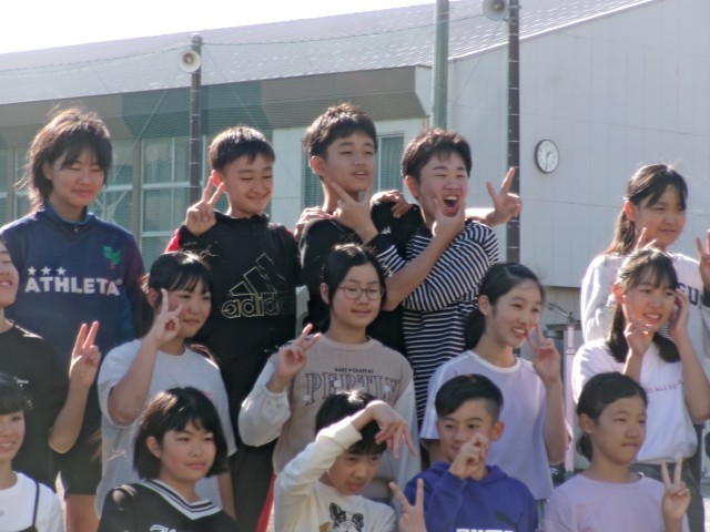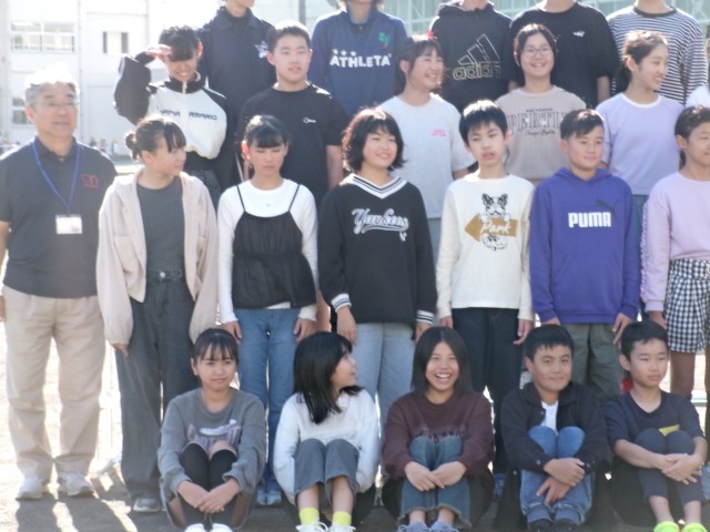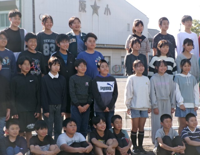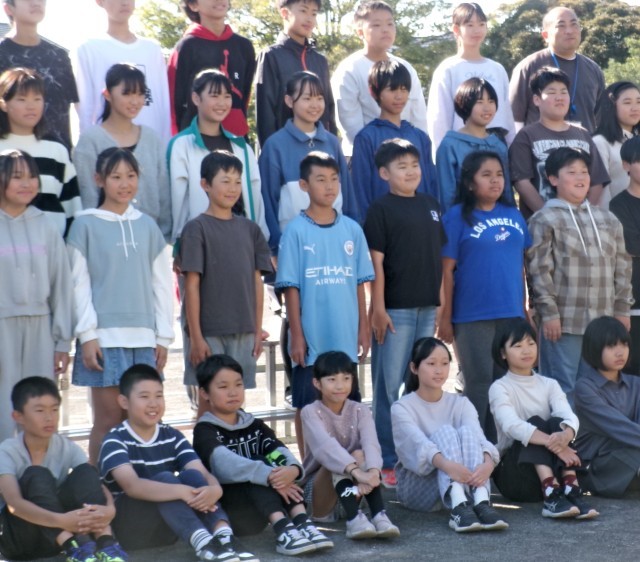 6年生が、卒業アルバム用の学年撮影をしていました。