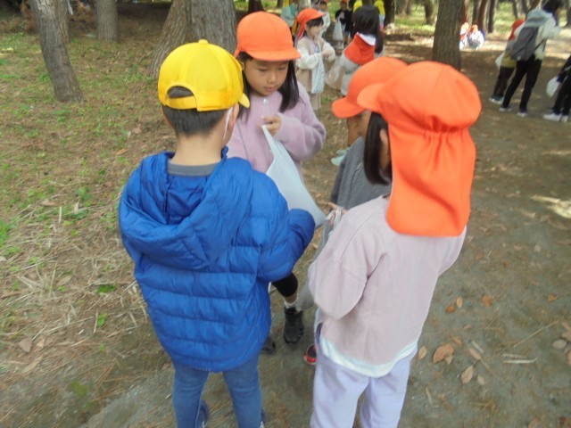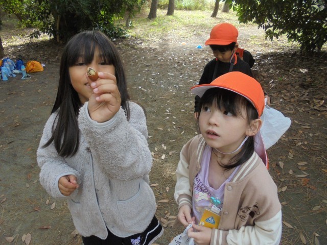 どんぐりやまつぼっくりをたくさん見つけました。