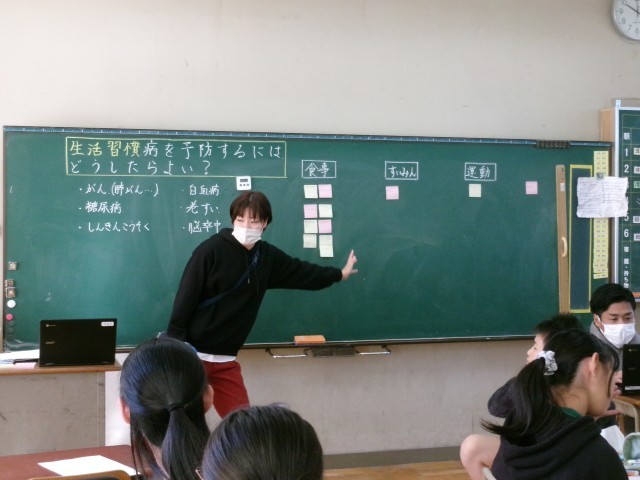 6年1組の保健の授業の様子です。生活習慣病についての学習です。今日は体育担当と養護教諭とのTTで授業を行いました。