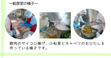 今日のおひたしの小松菜は、沼津市で栽培収穫されたものです。色が鮮やかで食感もシャキシャキでした。
