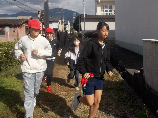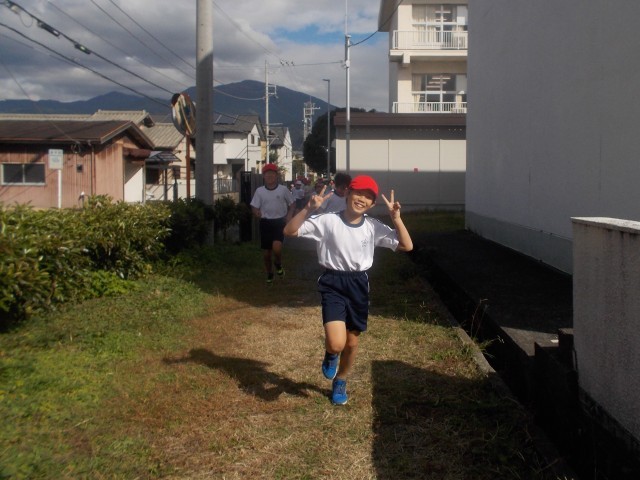 かけ足運動期間中の木曜日は「スーパーチャレンジ原小コース」を走る日です。1周620mのコースを楽しそうに走っています。