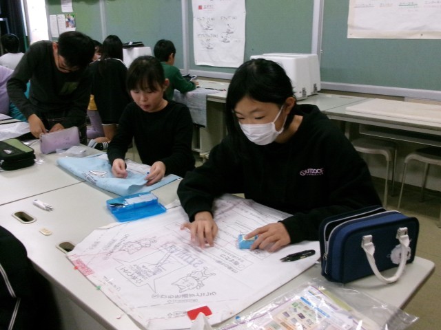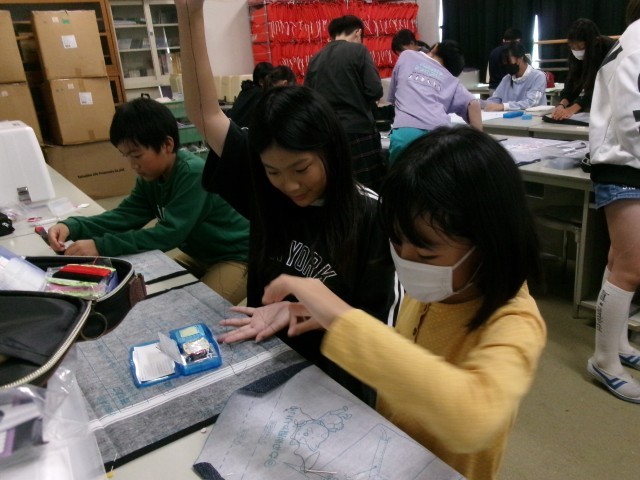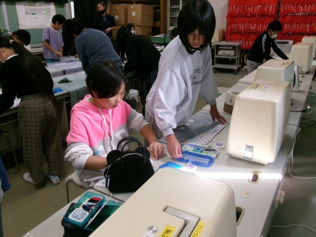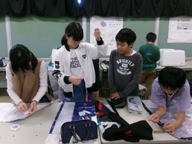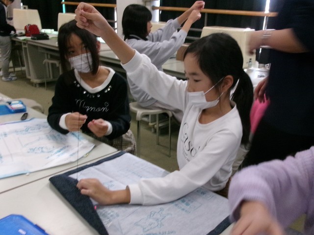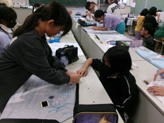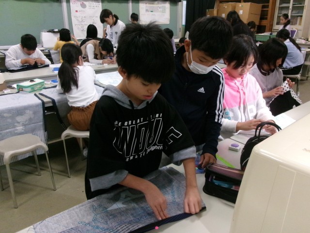 5年2組の家庭科の授業の様子です。エプロン製作に入りました。