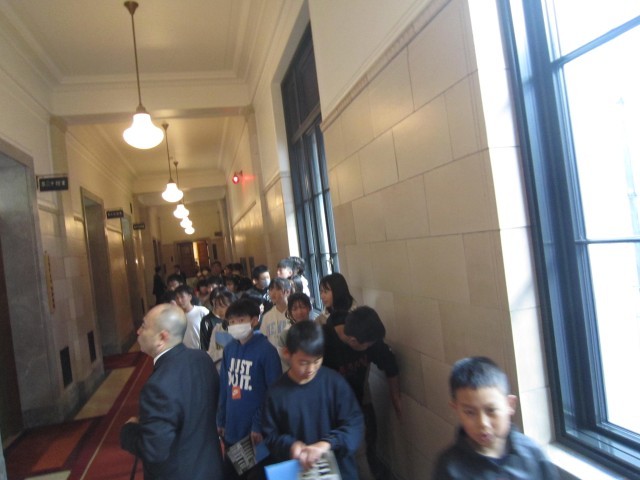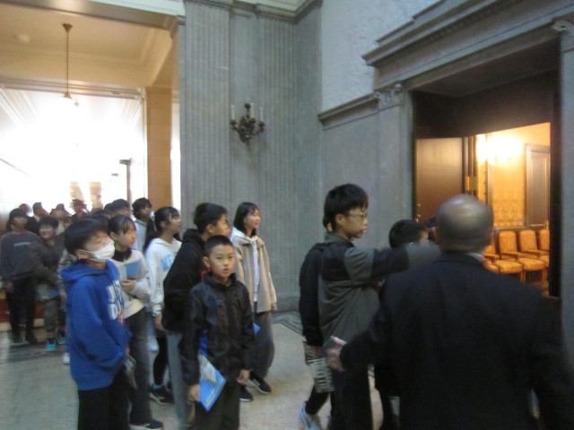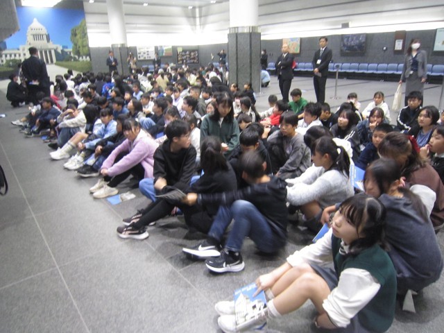 朝6:40に学校を出発し、最初の目的地である国会議事堂に到着。
