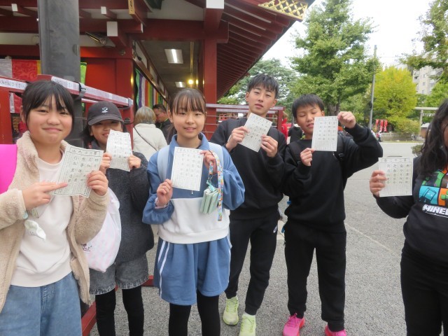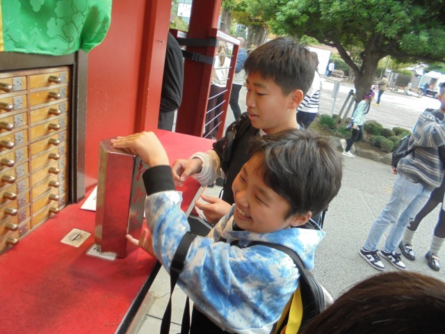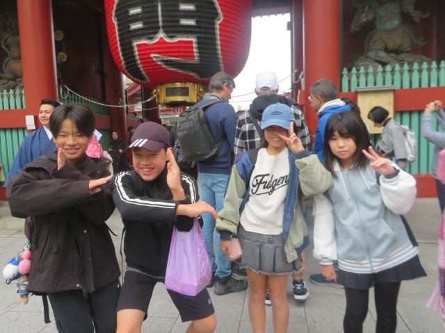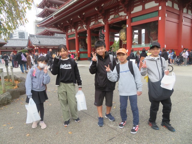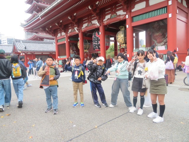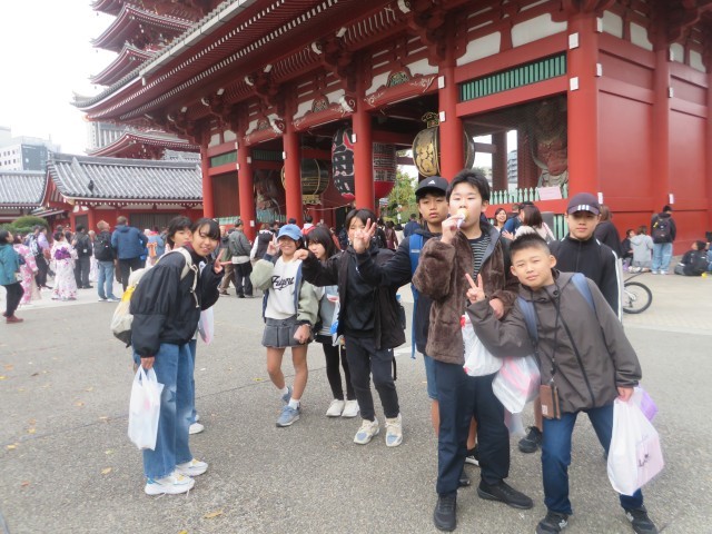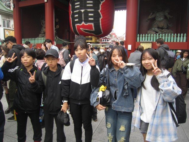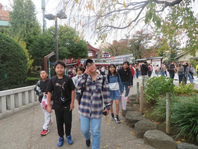 浅草寺・仲見世通りでは観光客の多さに驚きました。おみやげを買ったり、おみくじを引いたりグループごとに楽しみました。