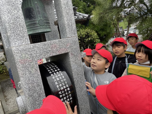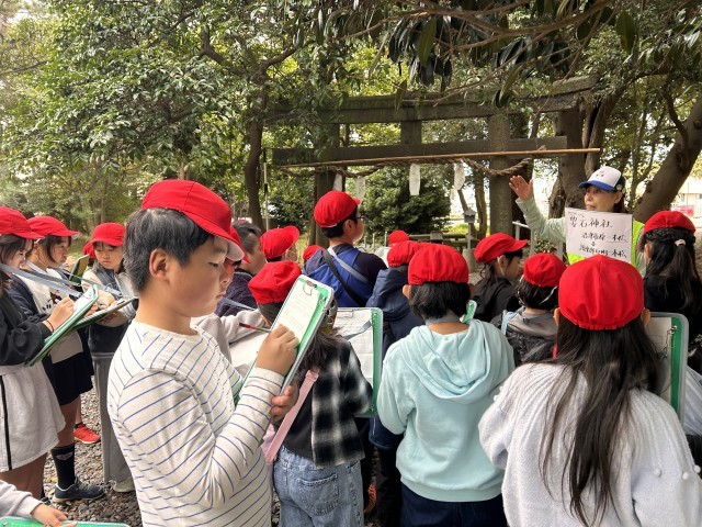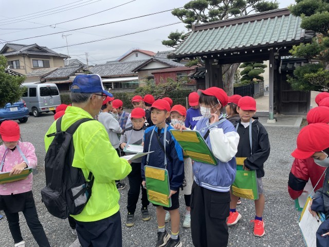 総合的な学習の時間に、3つのグループに分かれて原の歴史を教えてもらいました。ガイドさんのお話を真剣に聞き、原のお宝について学びを深めることができました。