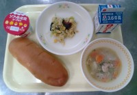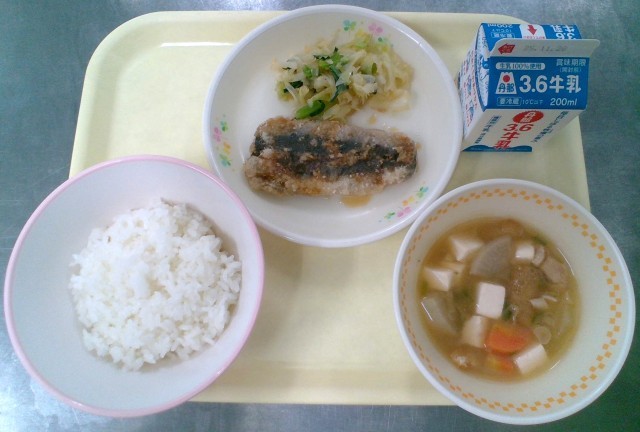 ごはん 牛乳 いわしのかば焼き 辛子和え 薄くず汁