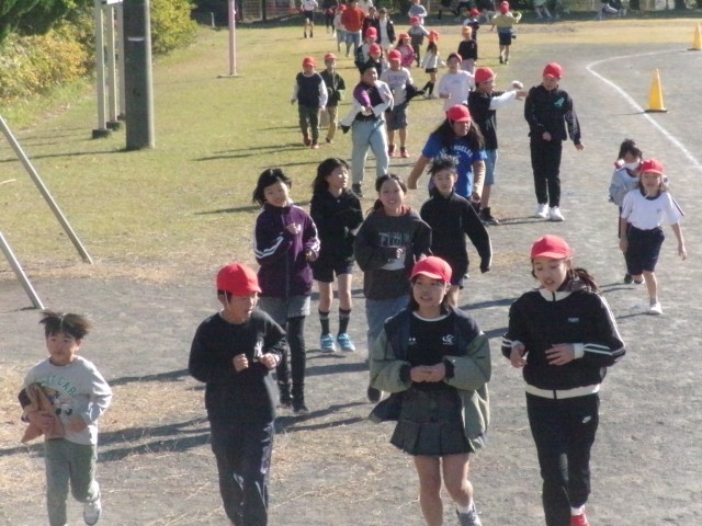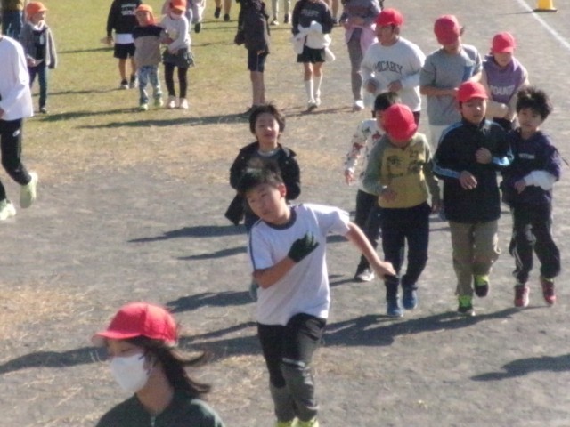 今日はスーパーチャレンジ原小コースを走る日です。1周620m、がんばっています。