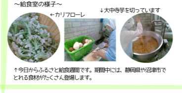 今日からふるさと給食週間です。私たちの住む静岡県にはたくさんのおいしい食材がたくさんあります。