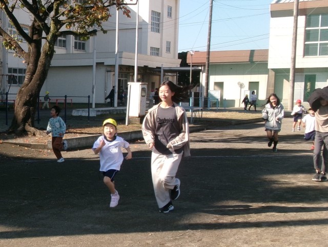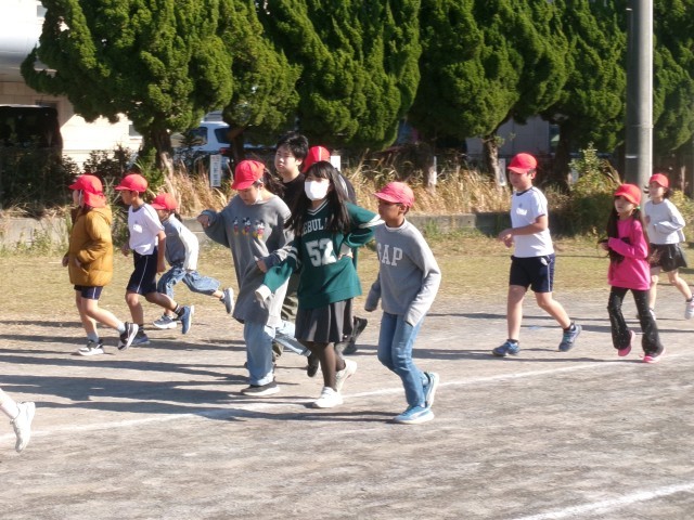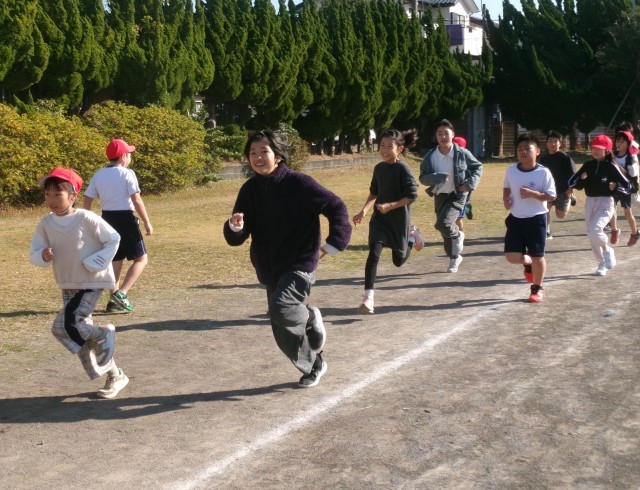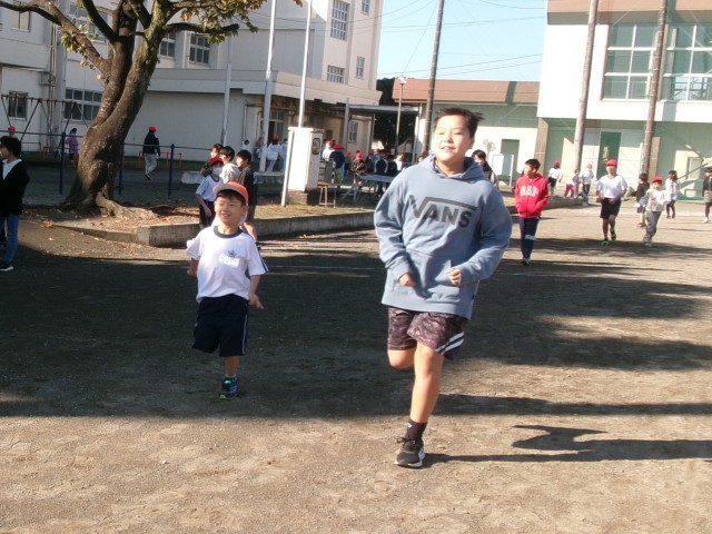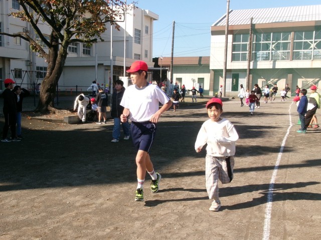 水曜日はペアかけ足の日です。ペアの低学年の子のペースに合わせて走ってあげる姿や、励ましながら走る姿が見られました。