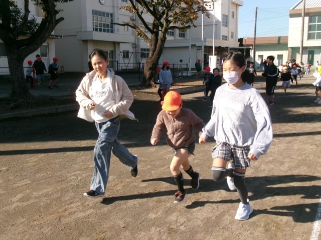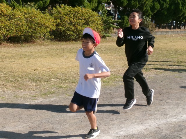 水曜日はペアかけ足の日です。ペアの低学年の子のペースに合わせて走ってあげる姿や、励ましながら走る姿が見られました。