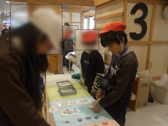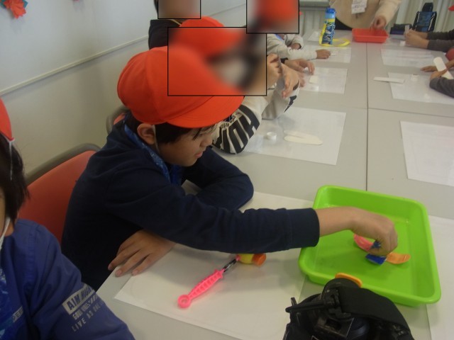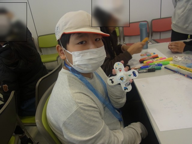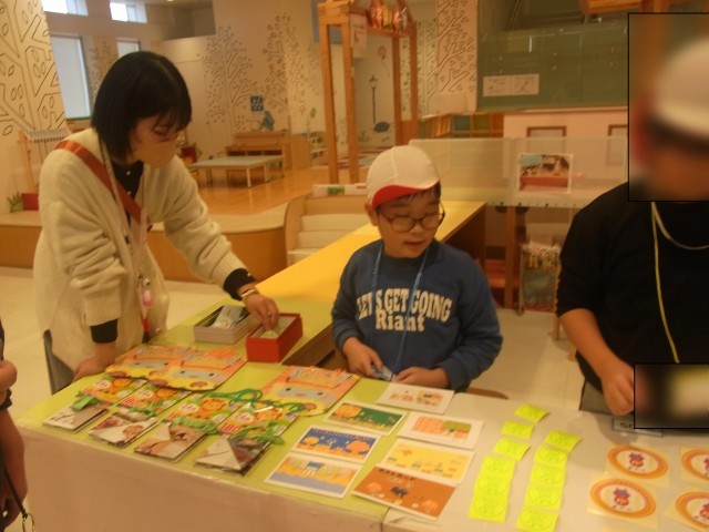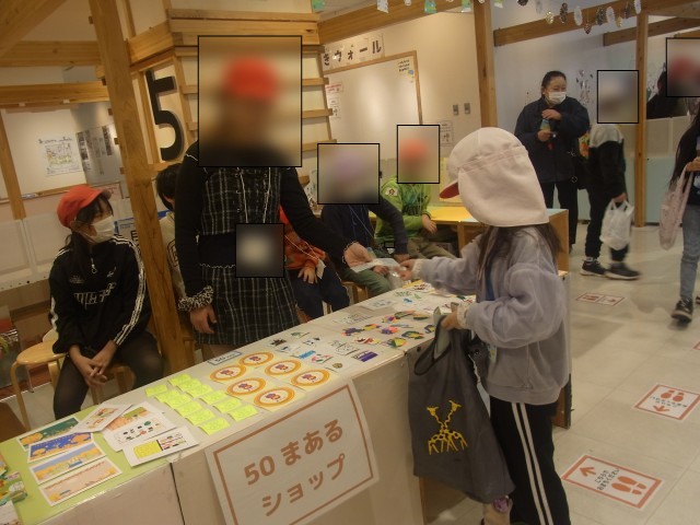 手作りの牛乳パックこまを作った後、お店屋さんとお客さんに分かれて買い物体験をしました。