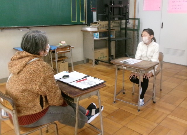 5年3組の英語「パフォーマンスデスト」の様子です。