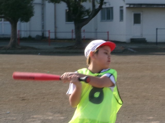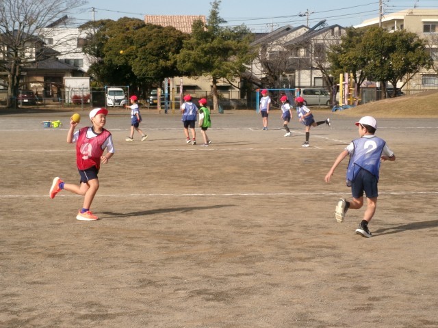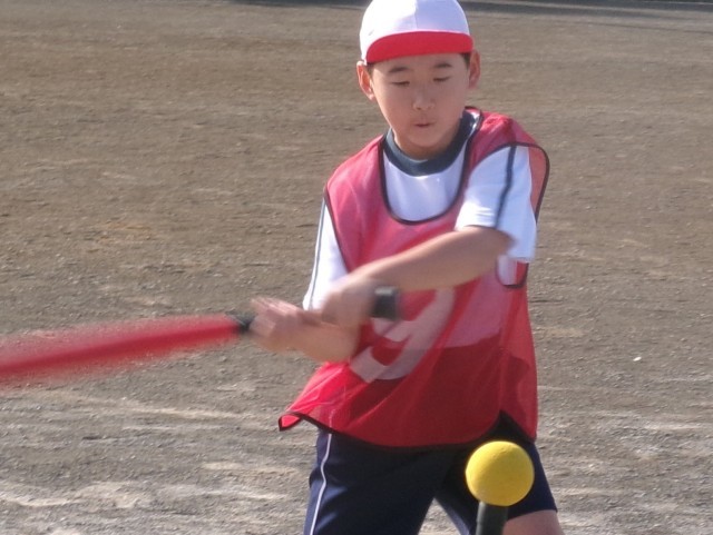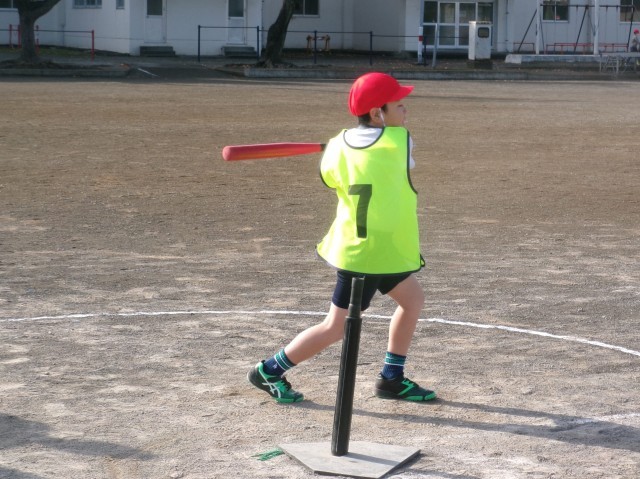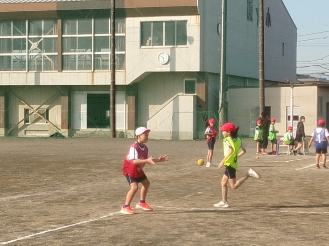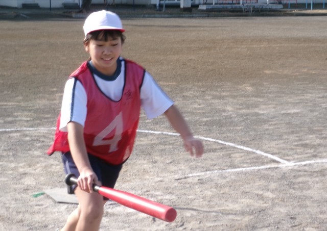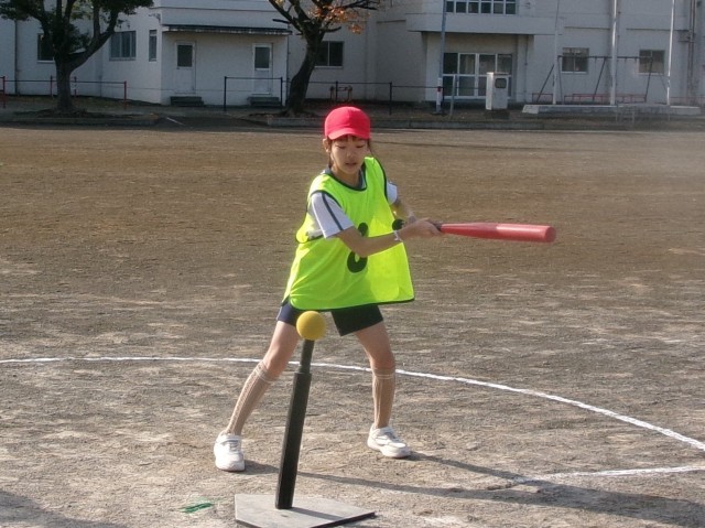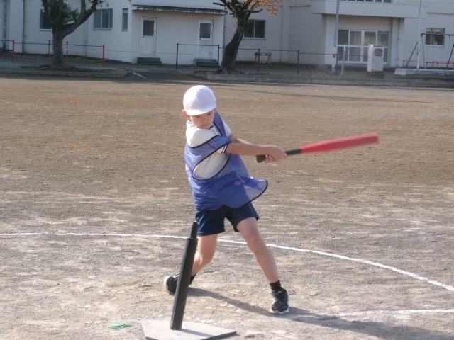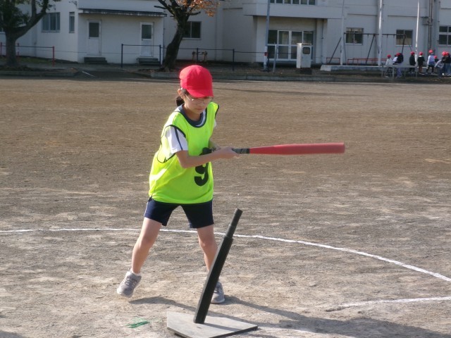 4年生は3クラスとも運動場で体育がありました。4年2組のティーボールの様子です。