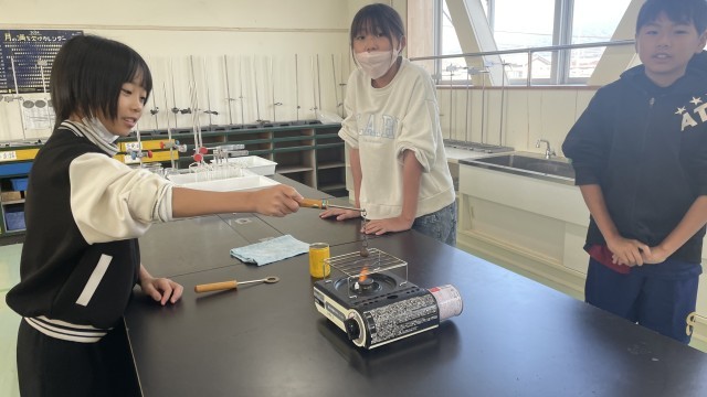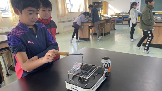 4年1組の理科の授業の様子です。金属を熱したり冷やしたりした時の体積の変化を調べる実験しました。