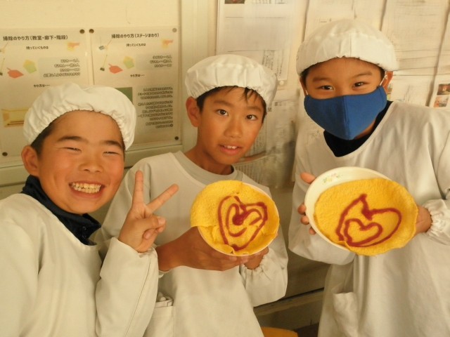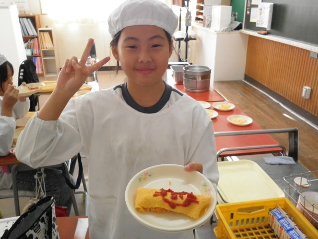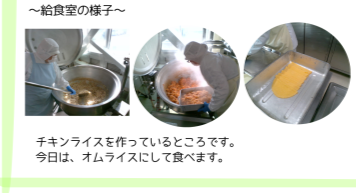 今日は、オムライスでした。オムライスに絵をかいて楽しんで食べていました。