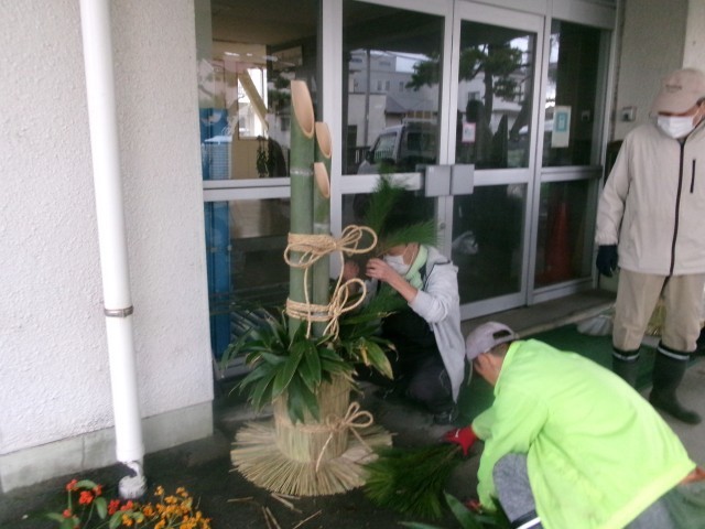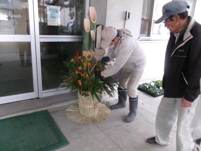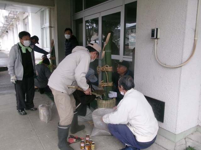 今年も西町二区の皆様に、門松をつくっていただきました。子どもたちにも見てもらいたいという西町二区の皆様の願いで今年は2学期中に設置しました。地域の皆様に支えられ、よい年を迎えることができそうです。