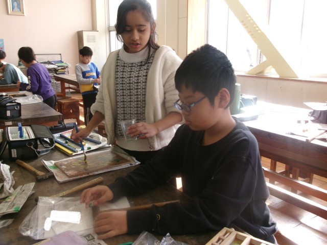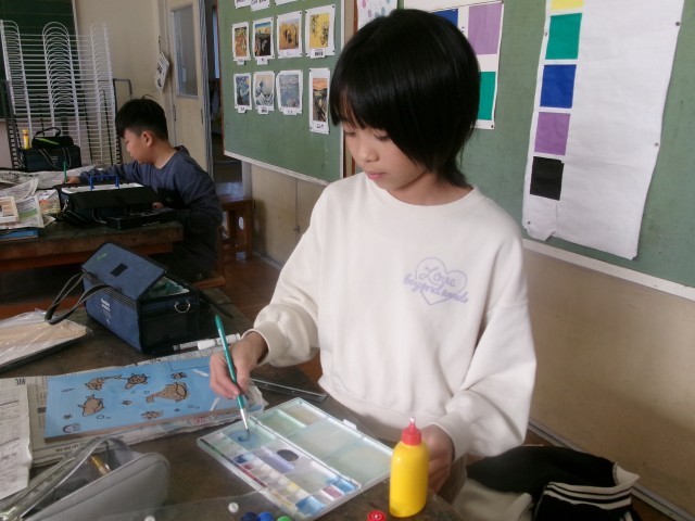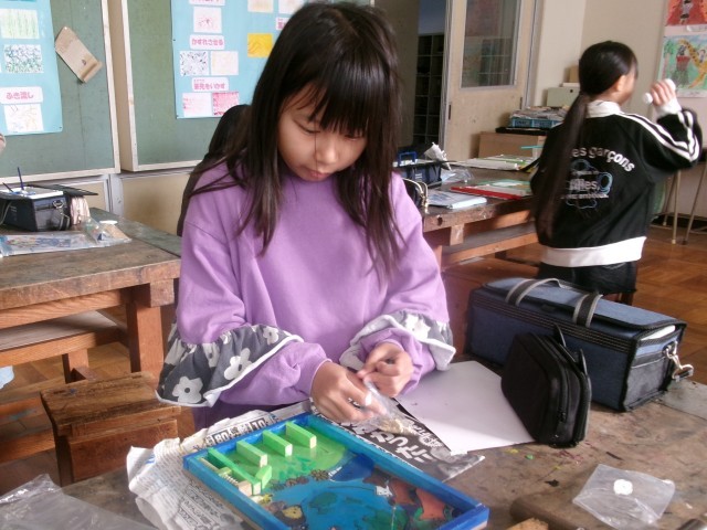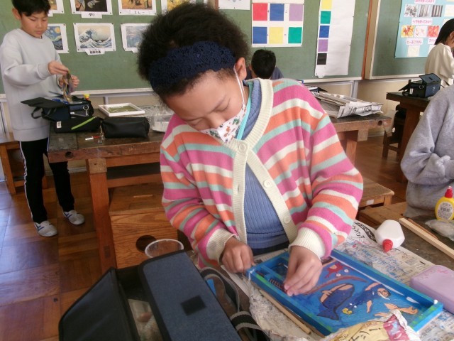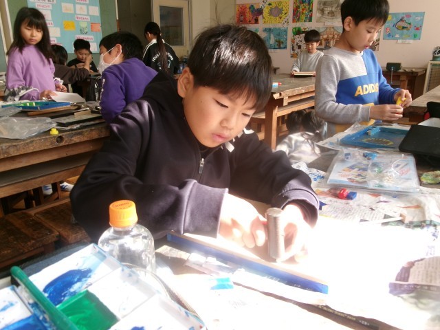 4年1組の図工「コロコロガーレ」の授業の様子です。だんだんと完成に近づいてきました。