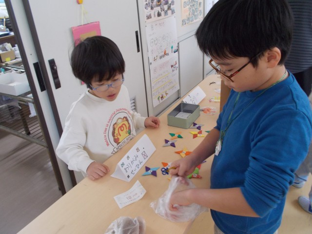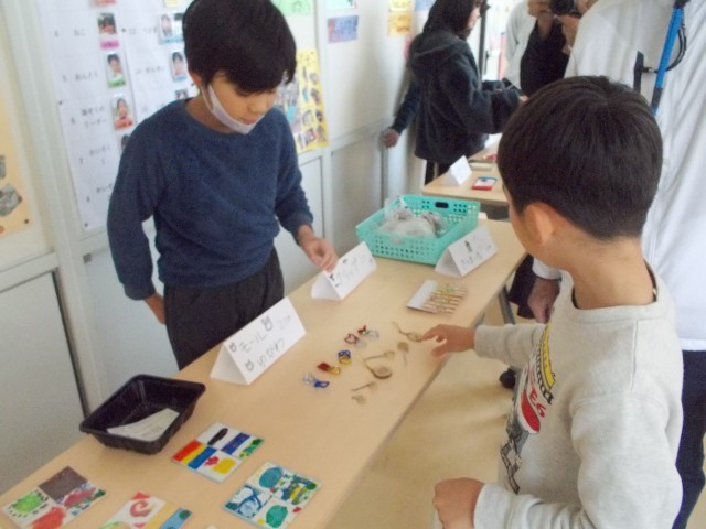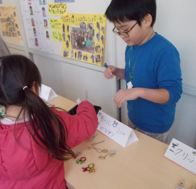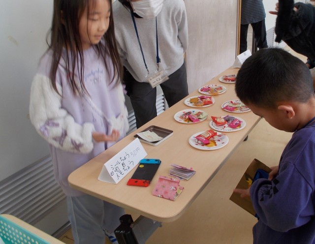 わくわくショップでは、2学期にみんなで作った商品を並べ、お店屋さんを開きました。