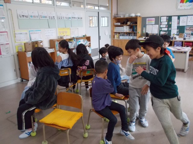 クリスマス会では、「いすとりゲーム」「何でもバスケット」をみんなで遊びました。