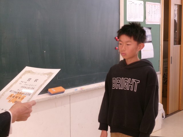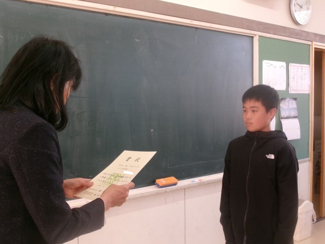 夏休みに取り組んだ絵画作品や書写作品、沼津市の美術展、税の標語、沼津文園で優秀な作品として選ばれた子どもたちが、校長先生から賞状を受け取りました。またボランティア活動を行った児童が地域の方々から感謝状をいただきました。