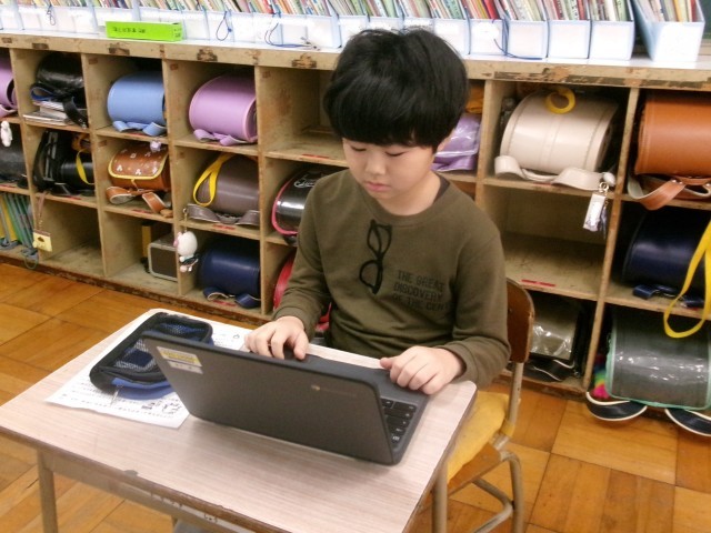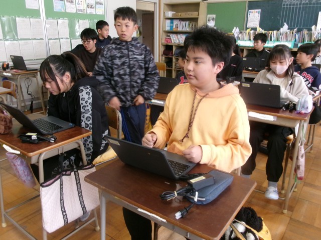 3学期初日の様子です。多くの学年で新しいパソコンの貸し出しを行いました。各クラスでパソコン使用のルールについて再び確認しました。