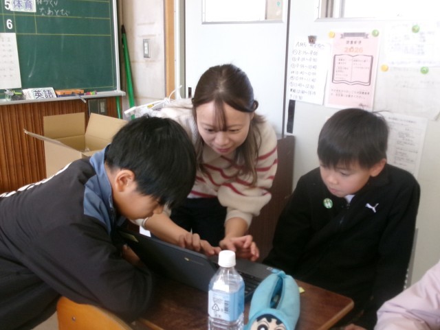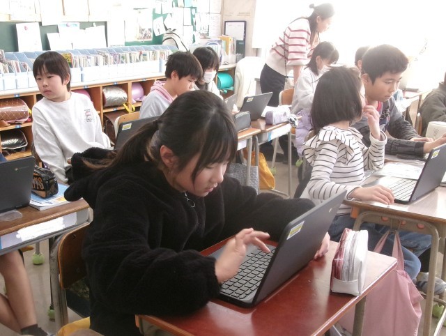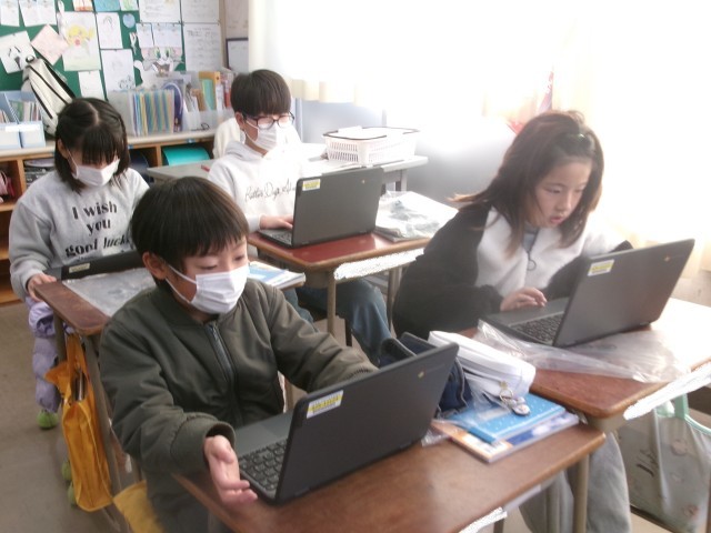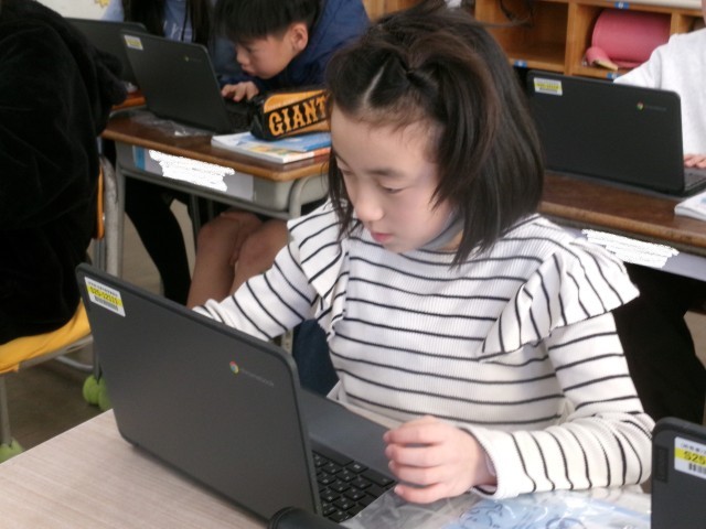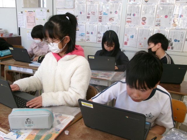 4年3組は新しいパソコンで年賀状を作っていました。。