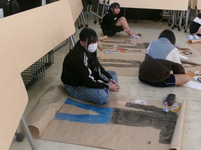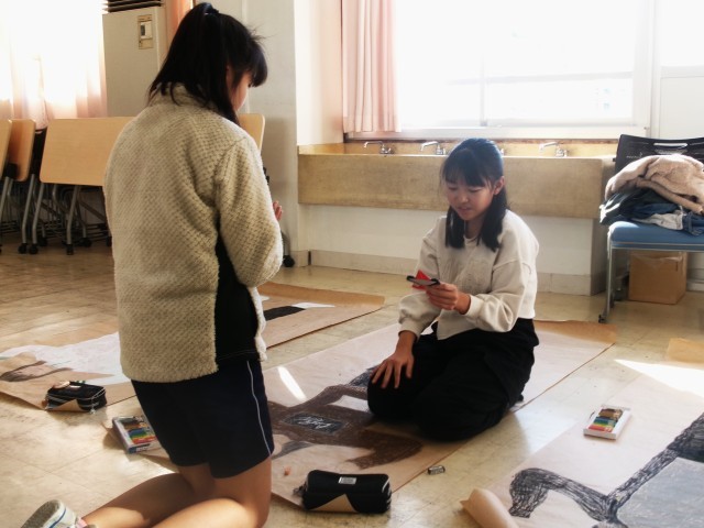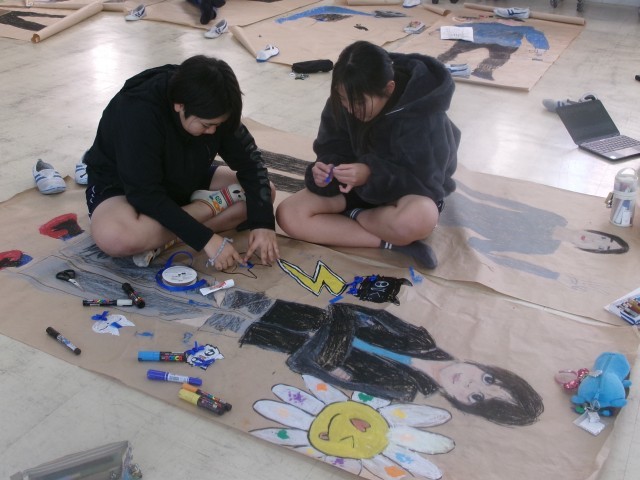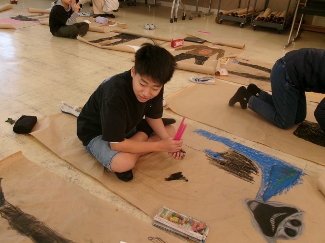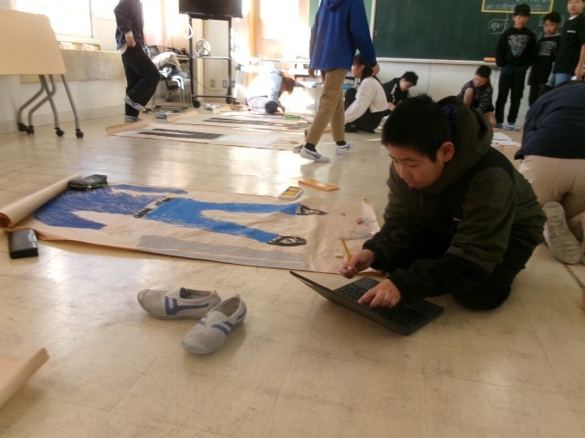 6年2組の図工「等身大の自分」の様子です。だいぶ仕上がってきました。