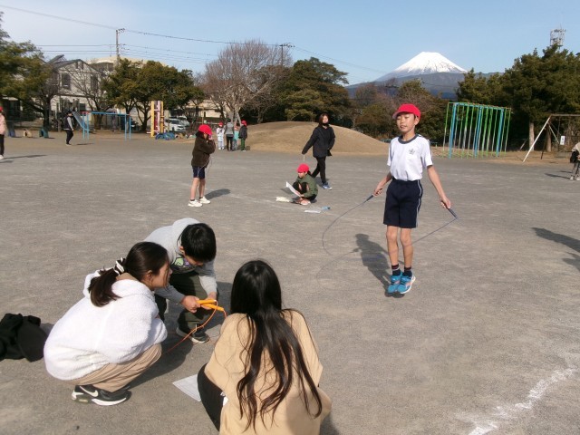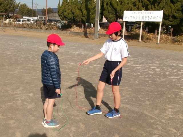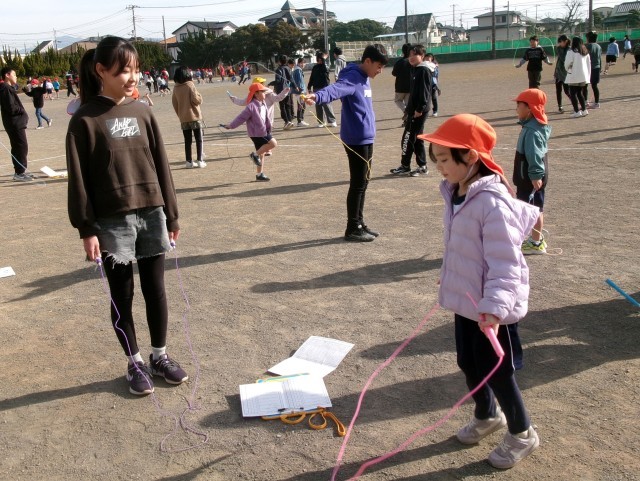 今日はペアなわとびの日でした。上の学年の子が、ペアの子に教えてあげたり数えてあげたりする時間です。高学年の児童が優しく教えてあげる姿が微笑ましいです。