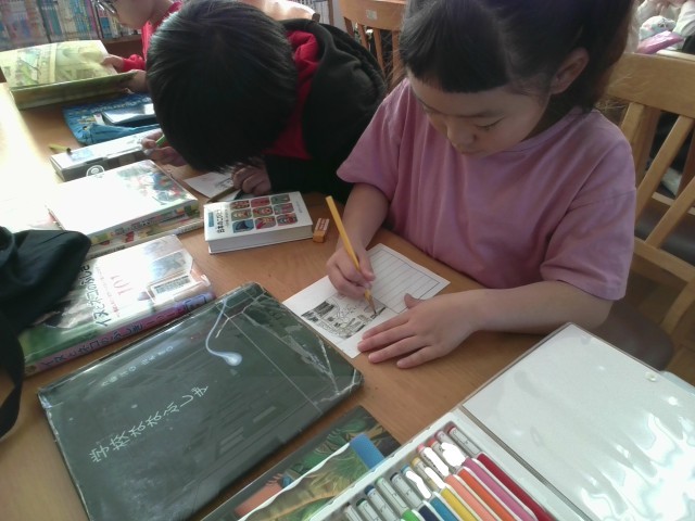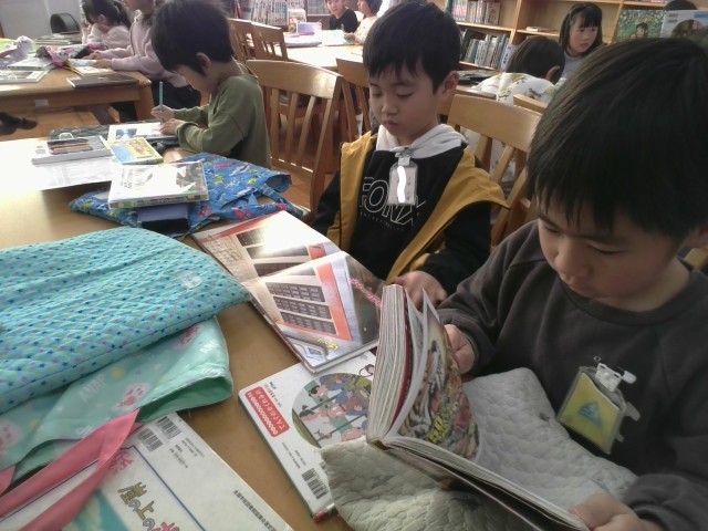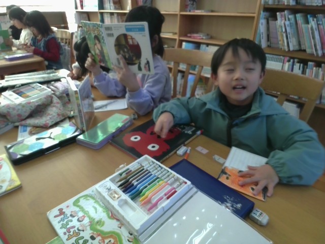 1年生の金曜日は図書館の日です。月曜日にペア読書があり、6年生のお兄さんお姉さんに読み聞かせをしてあげるので、その本を選んで練習をしました。また、その時に渡す読書郵便も完成です。月曜日が楽しみです。