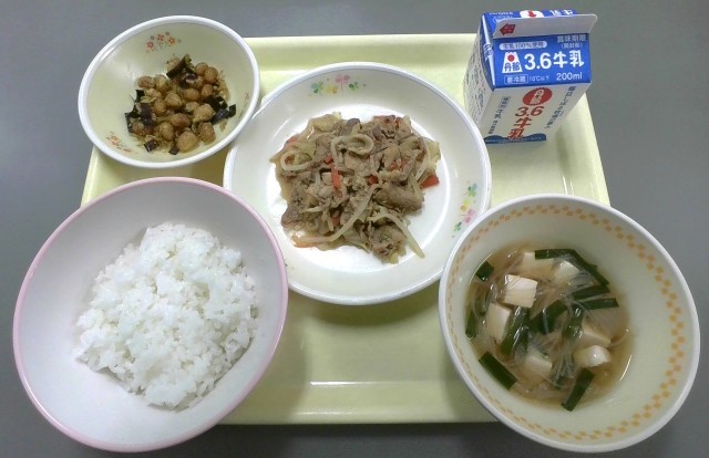 ごはん 牛乳 ごま焼き肉 だいずのカレーがらめ 春雨スープ
