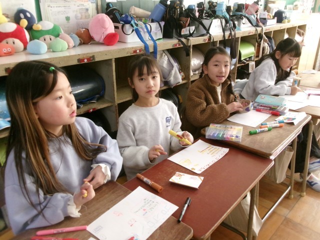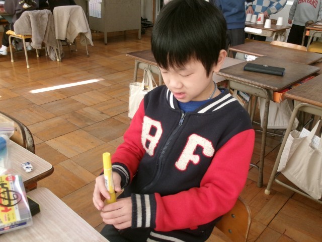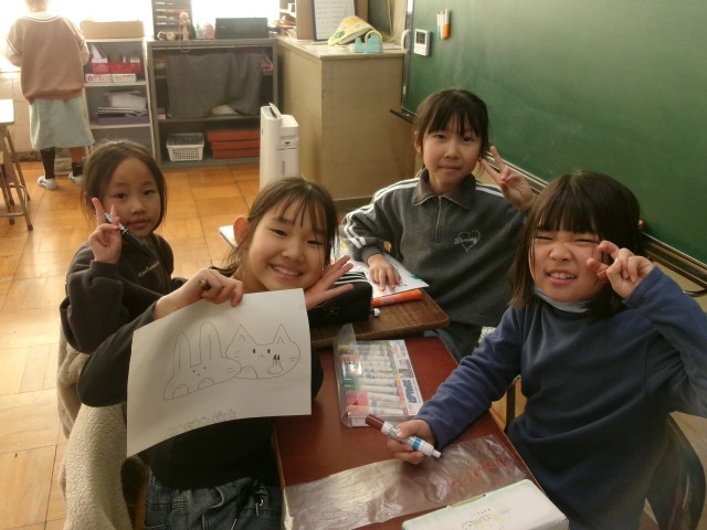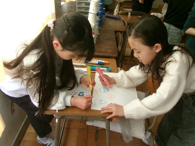 2年1組から楽しそうな声が聞こえてきました。明日の「あそびランド」の準備をしていました。明日は1年生の皆さんに「あそびランド」で楽しんでもらうようです。