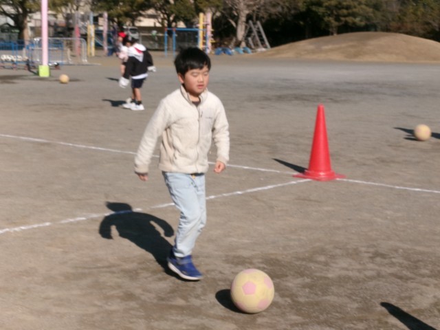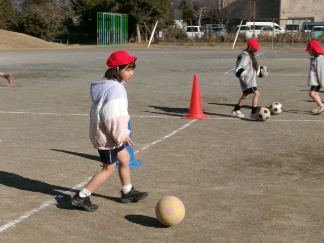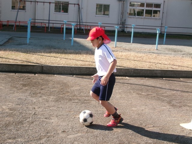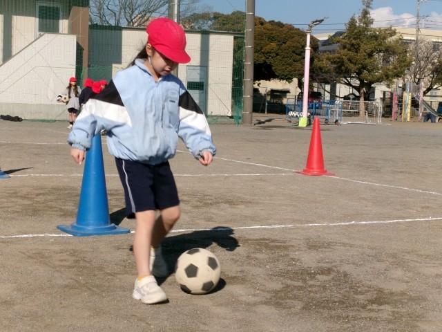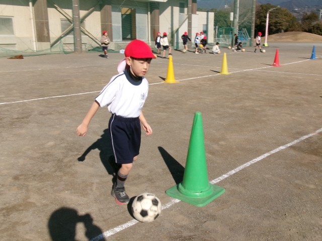 2年1組の体育の授業の様子です。ドリブルの練習です。