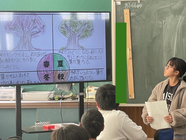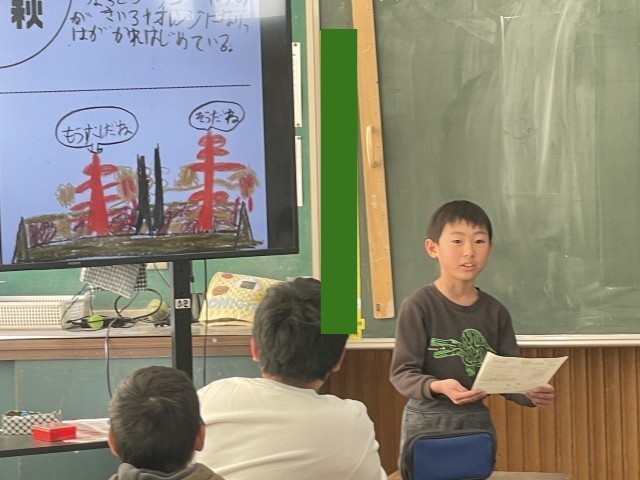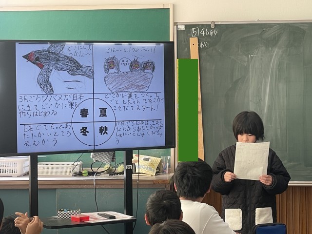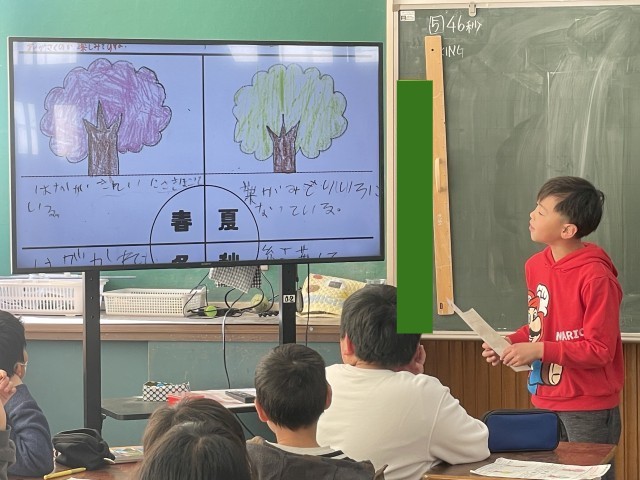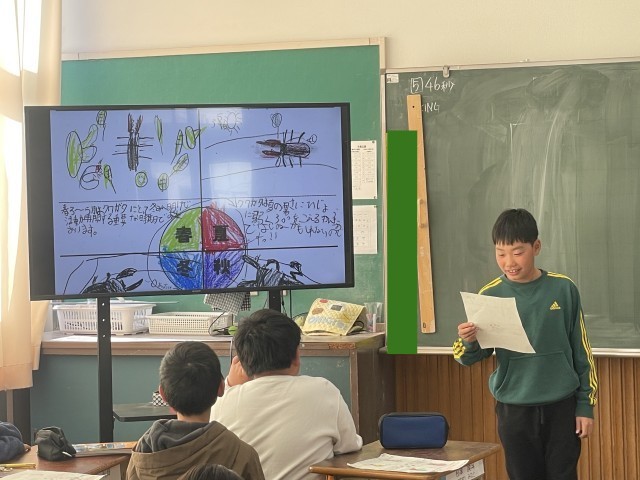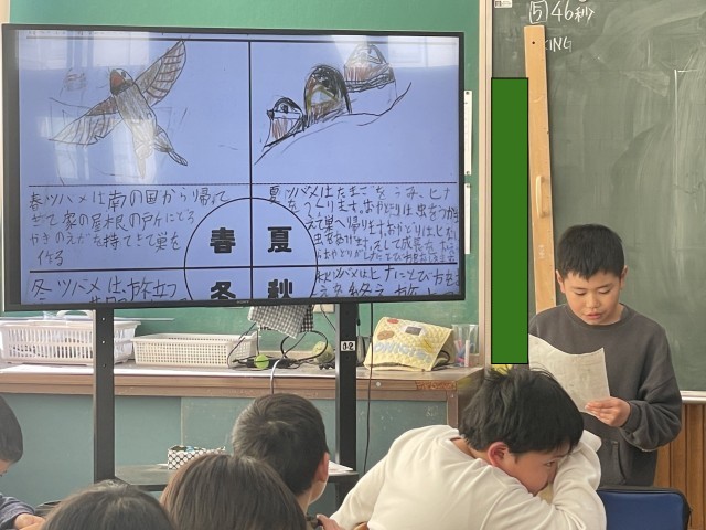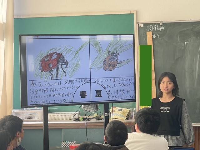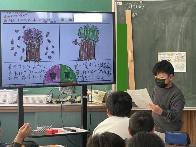 4-3の理科の様子です。生物の1年の成長をまとめて発表しました。