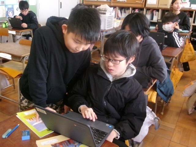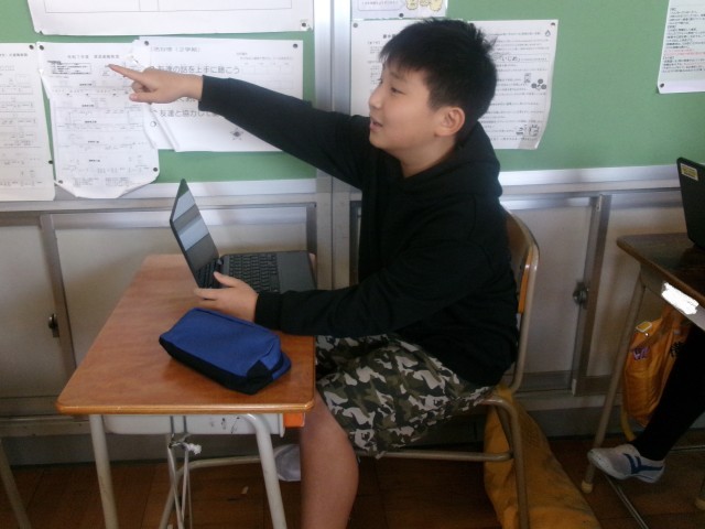 5年3組の算数の授業の様子です。パソコンに入った新しいソフトの使い方を確認していました。。