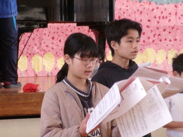 6年生が学年合唱の練習をしていました。
