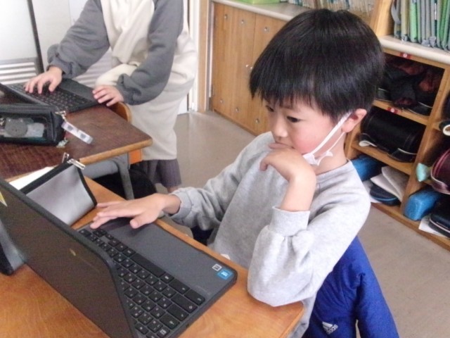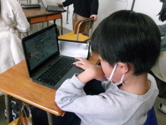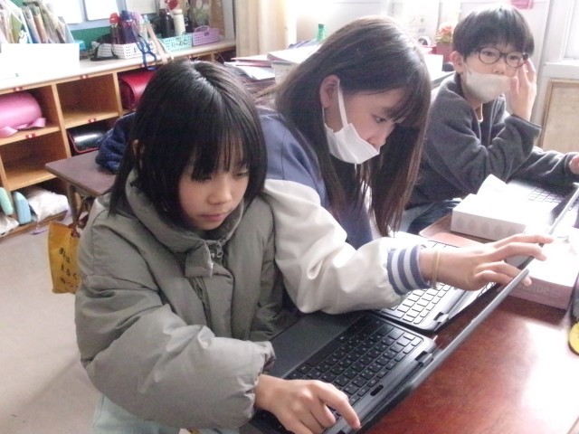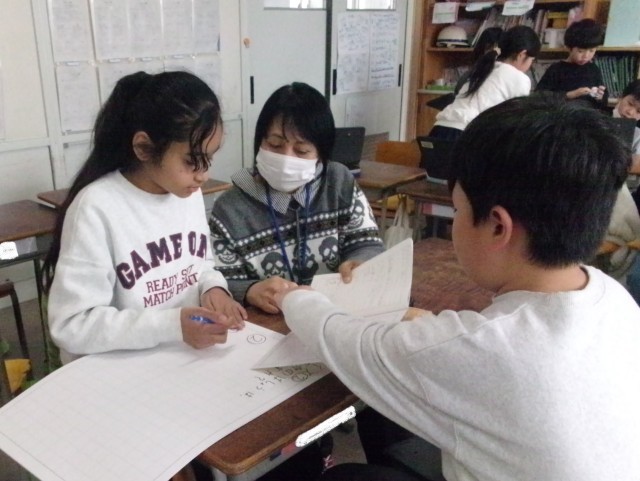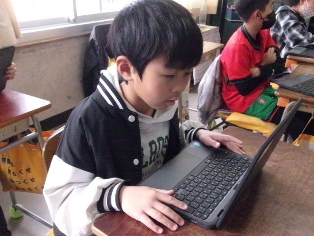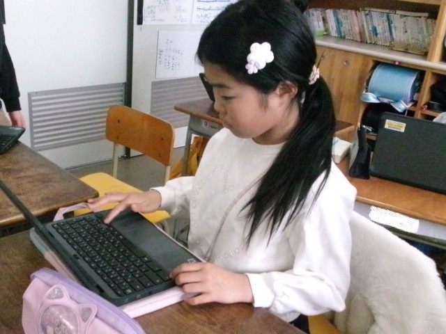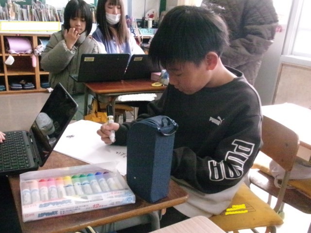 4年1組の総合「原の宝パート2」の授業の様子です。参観日で発表するための準備をしています。