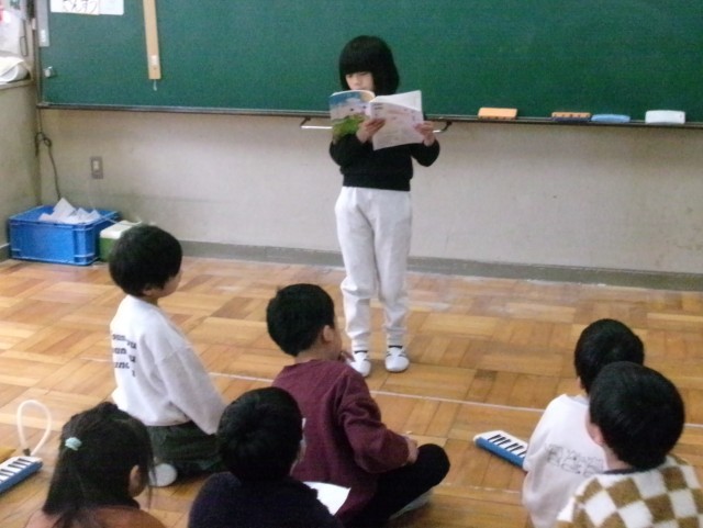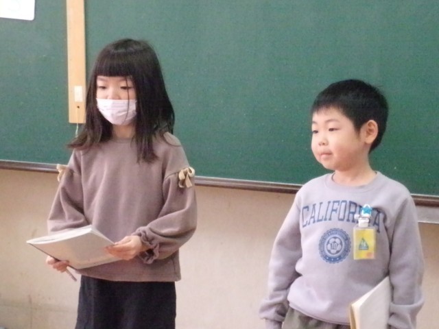 1年2組は学習集発表会の練習です。