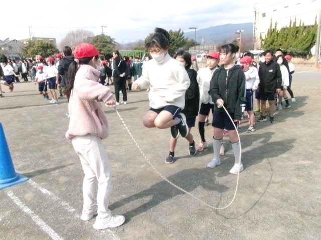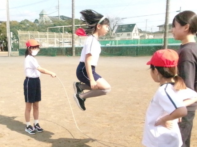 今日は体育委員会の5年生が企画したながなわ大会が行われました。みんなでにこにこ楽しんでいるクラスあり、最高記録を目指しているクラスありの、各クラスの思い出に残る大会となりました。