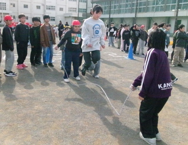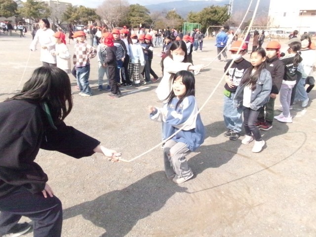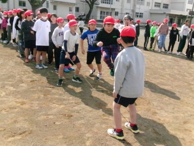 今日は体育委員会の5年生が企画したながなわ大会が行われました。みんなでにこにこ楽しんでいるクラスあり、最高記録を目指しているクラスありの、各クラスの思い出に残る大会となりました。3年1組の優勝という結果で幕を閉じました。