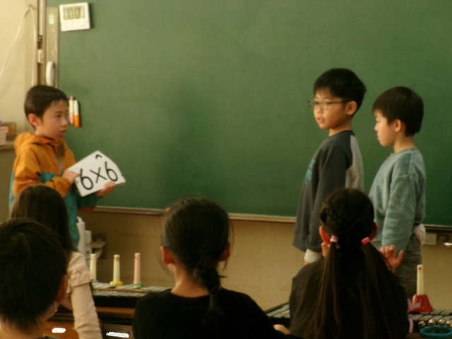 2年1組の生活科の授業の様子です。明日の参観日で行う学習発表会のリハーサルをしています。