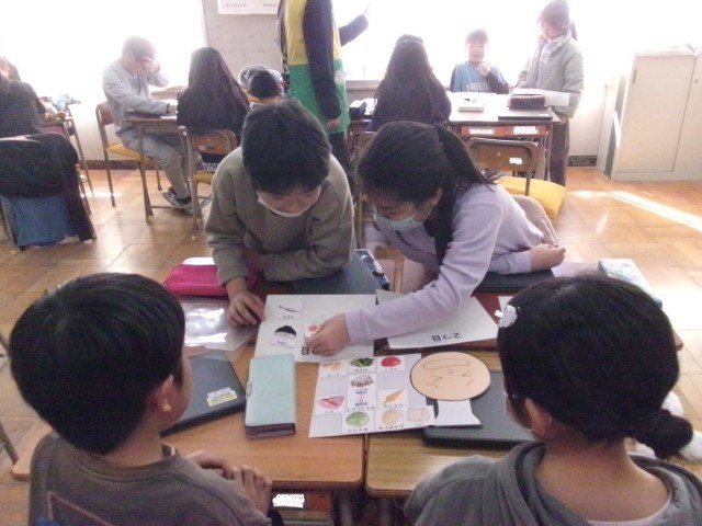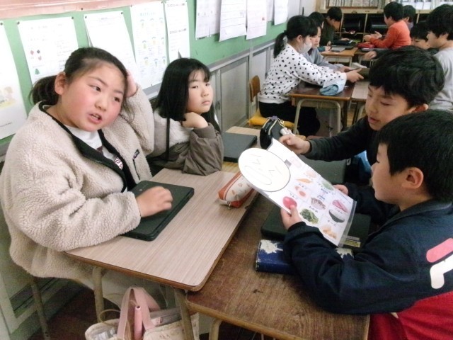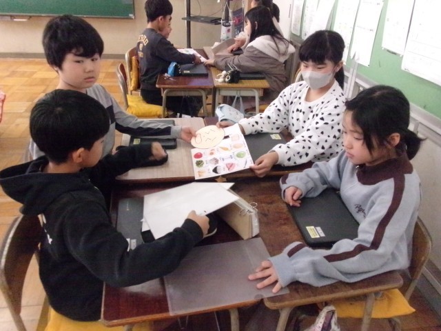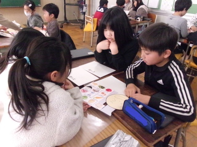 3年1組の学活「食べ物のはたらきを知ろう」の授業の様子です。健康な体を作るためには3つの栄養グループをバランスよく食べるといいことを知りました。