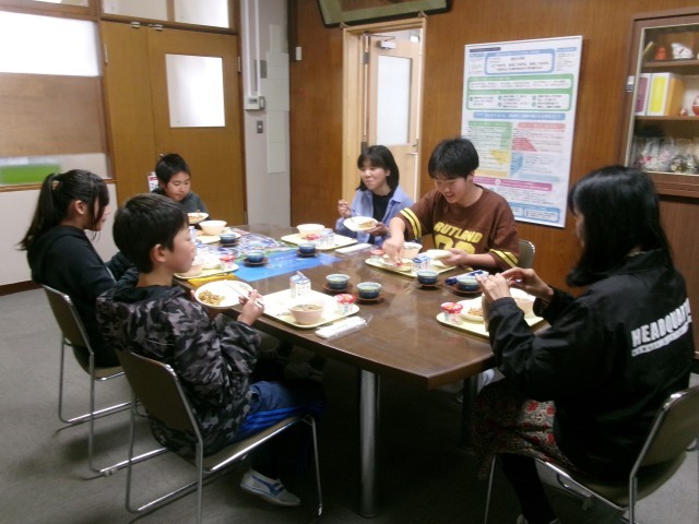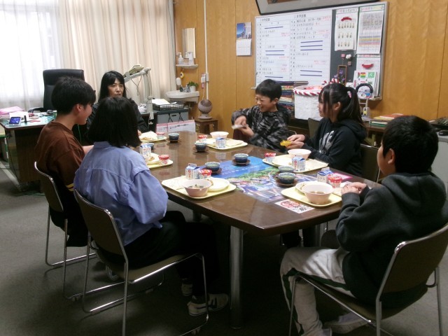 6年2組の校長先生との会食の様子です。今日も笑い声が絶えない会食でした。
