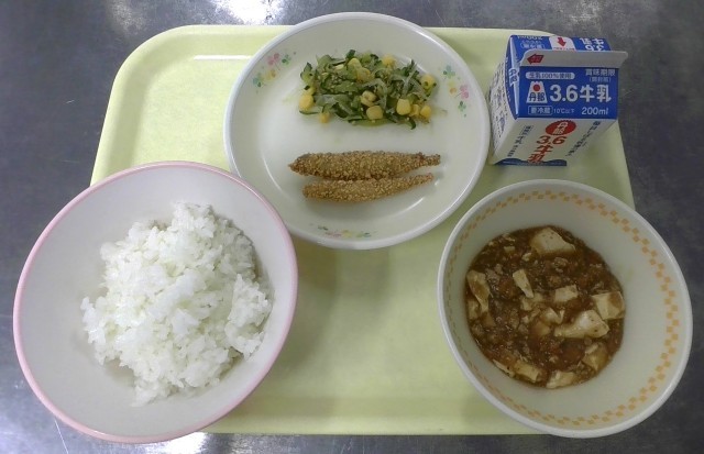 ごはん 牛乳 きびなごフライ はるさめサラダ マーボどうふ