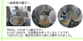 今日は、3月3日の桃の節句にちなんだ献立でした。