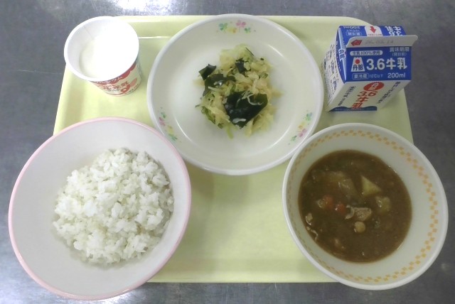 ごはん 牛乳 チキンカレー 海藻サラダ ヨーグルト